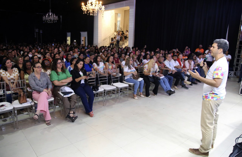 “A verdadeira valorização passa por uma remuneração digna. Em 2017 não teve reajuste, em 2018 e 2019 a mesma coisa. Em 2020 e 2021, a pandemia não permitiu que o reajuste fosse concedido. Já em 2022, demos reajuste dentro das possibilidades do Município. Agora, em 2023, o MEC apontou um percentual para atualização do piso de 14,95%. Mas, conversando com a nossa equipe econômica eu anuncio a vocês que o reajuste de toda a categoria não será de 14,95%. Será de 15%”, disse o prefeito, aplaudido de pé pelos professores.