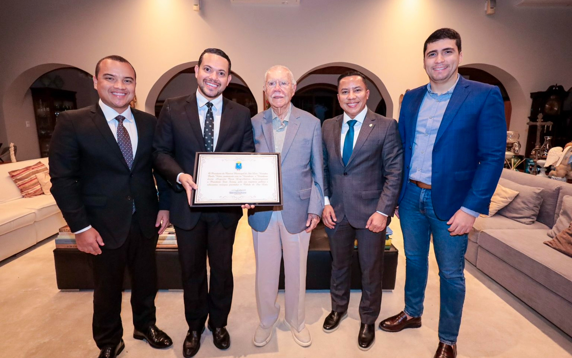 “José Sarney é uma figura marcante na história do Brasil, um exemplo de dedicação à política do bem. Hoje, tivemos a honra de, ao lado dos colegas vereadores, visitá-lo em sua residência para entregar, em nome da Câmara Municipal de São Luís, uma placa alusiva em sua homenagem. Já é tradição ouvir os conselhos do nosso eterno presidente. Afinal, Sarney representa gerações que podem testemunhar o impacto de seu legado tanto para o Maranhão quanto para o Brasil”, declarou.