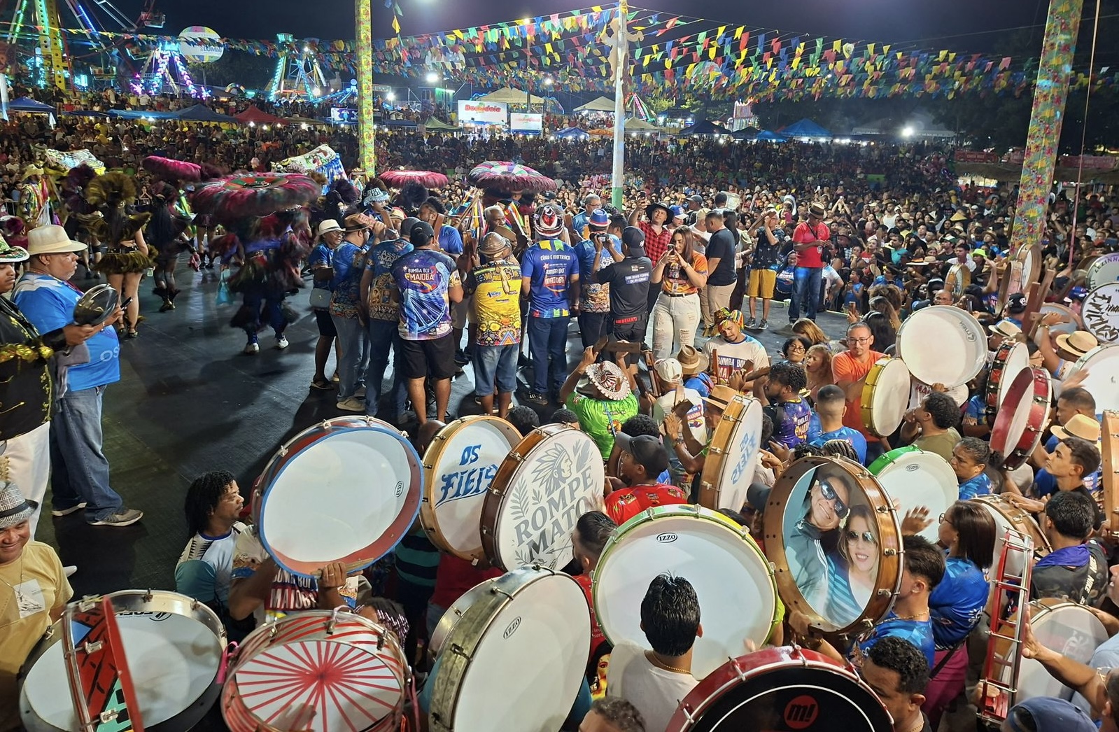 Sábado de tradição e emoção – A segunda noite, no sábado (21), foi marcada por um espetáculo de tradições. O Tambor de Crioula Cantoá de São Benedito abriu a festa com toda sua força ancestral, seguido pelos bois Brilho do Amanhecer, Upaon Açu, Meu Tamarineiro e o esperado Boi da Maioba, patrimônio cultural do Maranhão, que arrastou uma multidão. A irreverência do Cacuriá 100 Vergonha também levou todo mundo pra roda.