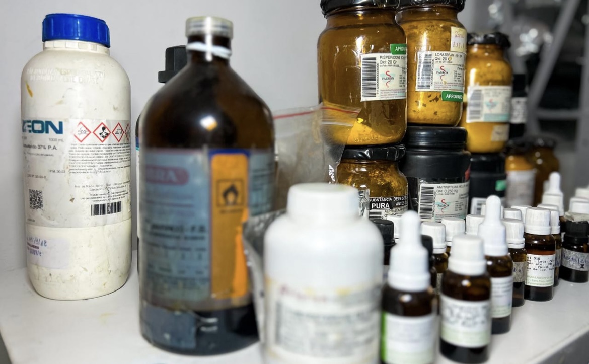 Outras substâncias encontradas são medicamentos controlados, como éter, clonazepam, procaína, ácido sulfúrico e testosterona. Os produtos, sem o controle adequado, podem causar graves danos à saúde e morte.