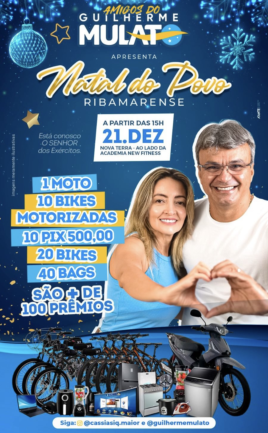 O jornalista e ex-candidato a prefeito de São José de Ribamar, Guilherme Mulato, anunciou nesta segunda-feira (01), a edição 2025 do Natal do Povo, maior festa natalina da história do município, idealizada por ele e organizada pelo grupo Amigos do Guilherme Mulato, que é presidido por sua esposa, a advogada Cássia Maior.