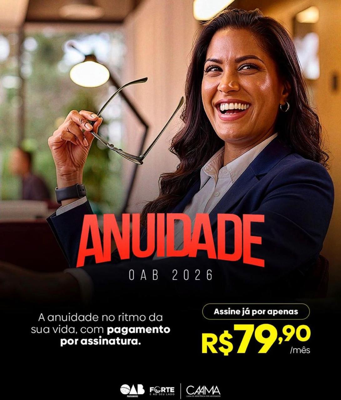 Descontos também continuam – O valor integral da anuidade é de R$ 959,00, com vencimento em 31 de março de 2026. Para quem não optar pela recorrência, a OAB/MA mantém descontos para pagamento à vista: