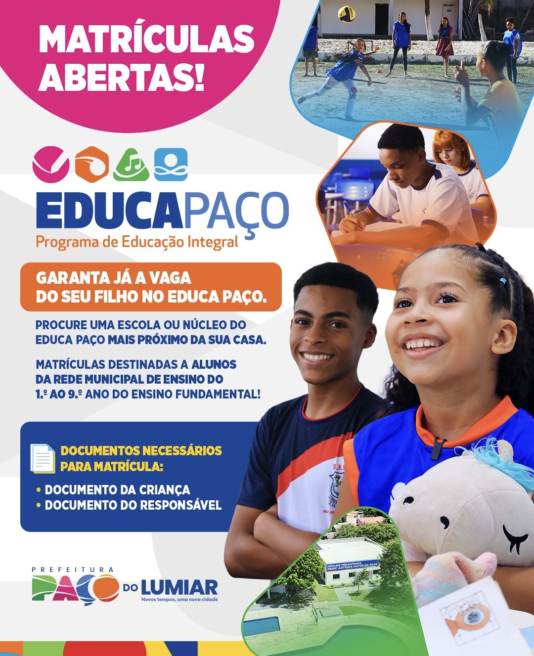 A Prefeitura de Paço do Lumiar reforça a importância de garantir a vaga o quanto antes. O EducaPaço é mais um avanço da atual gestão, que segue investindo na educação como ferramenta de desenvolvimento social e transformação de vidas.