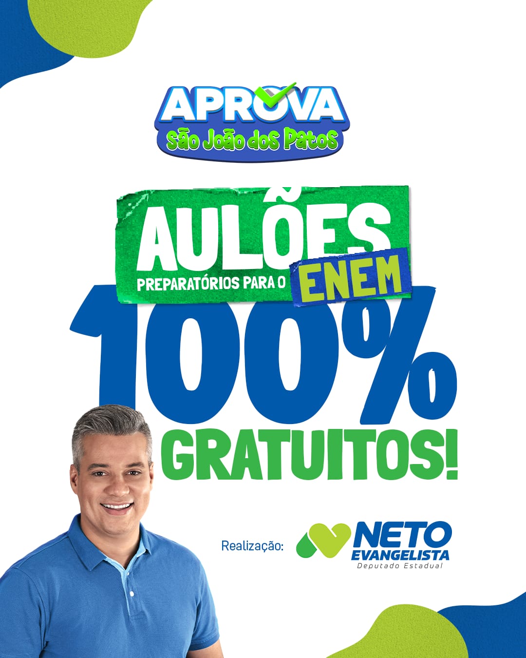 As aulas do “Aprova São João dos Patos” acontecerão nos dias 16 e 30 de setembro, e 07 e 21 de outubro. As inscrições podem ser feitas pelo site www.netoevangelista.com.br.